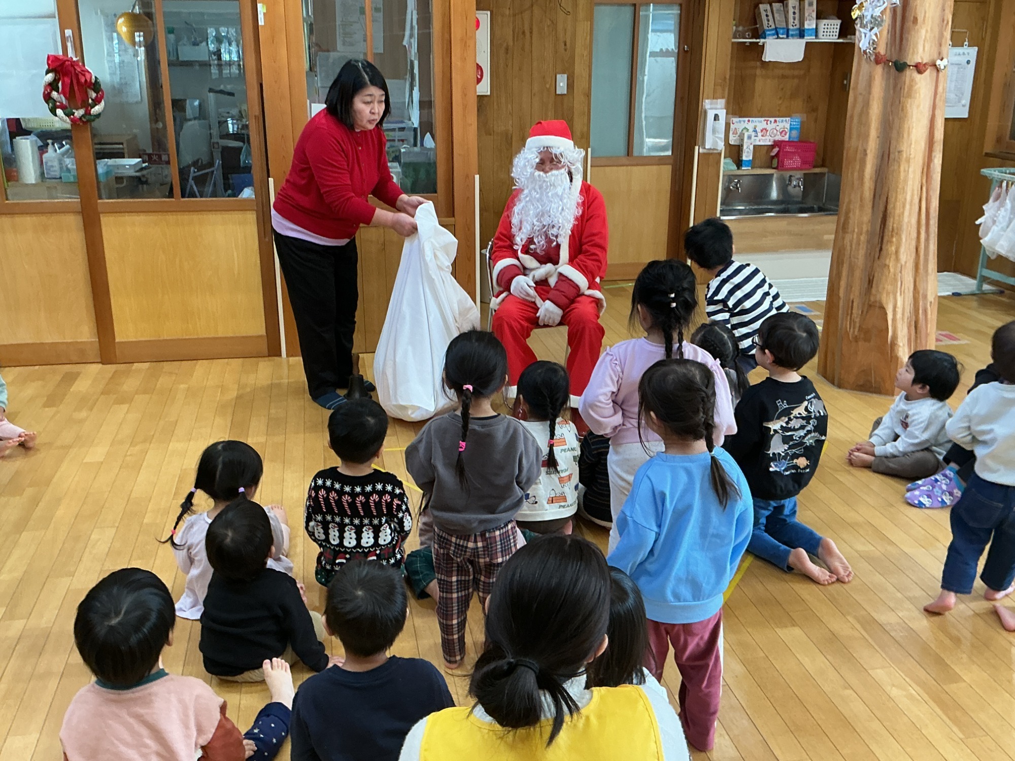 クラスごとにアドベントカレンダーを作りました。サンタさんやひつじ、リースと様々なアドベントカレンダーが出来上がり、毎日楽しみにカレンダーをめくって楽しんでいます。「きょうはだれのかな?」と自分の飾りの出番がくることを心待ちにしています。