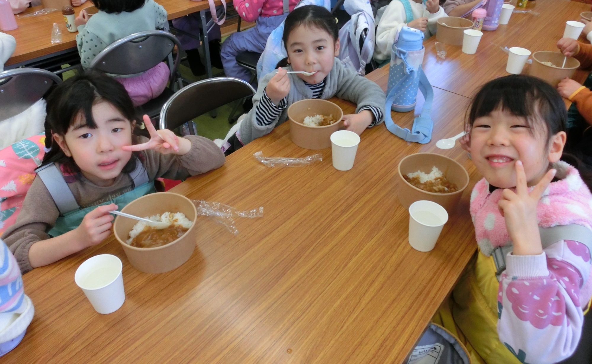 夕食が完成!「おいしいね」「もっと食べたい」ともりもり食べていました。グループごとカレーに特別な一品を入れました!