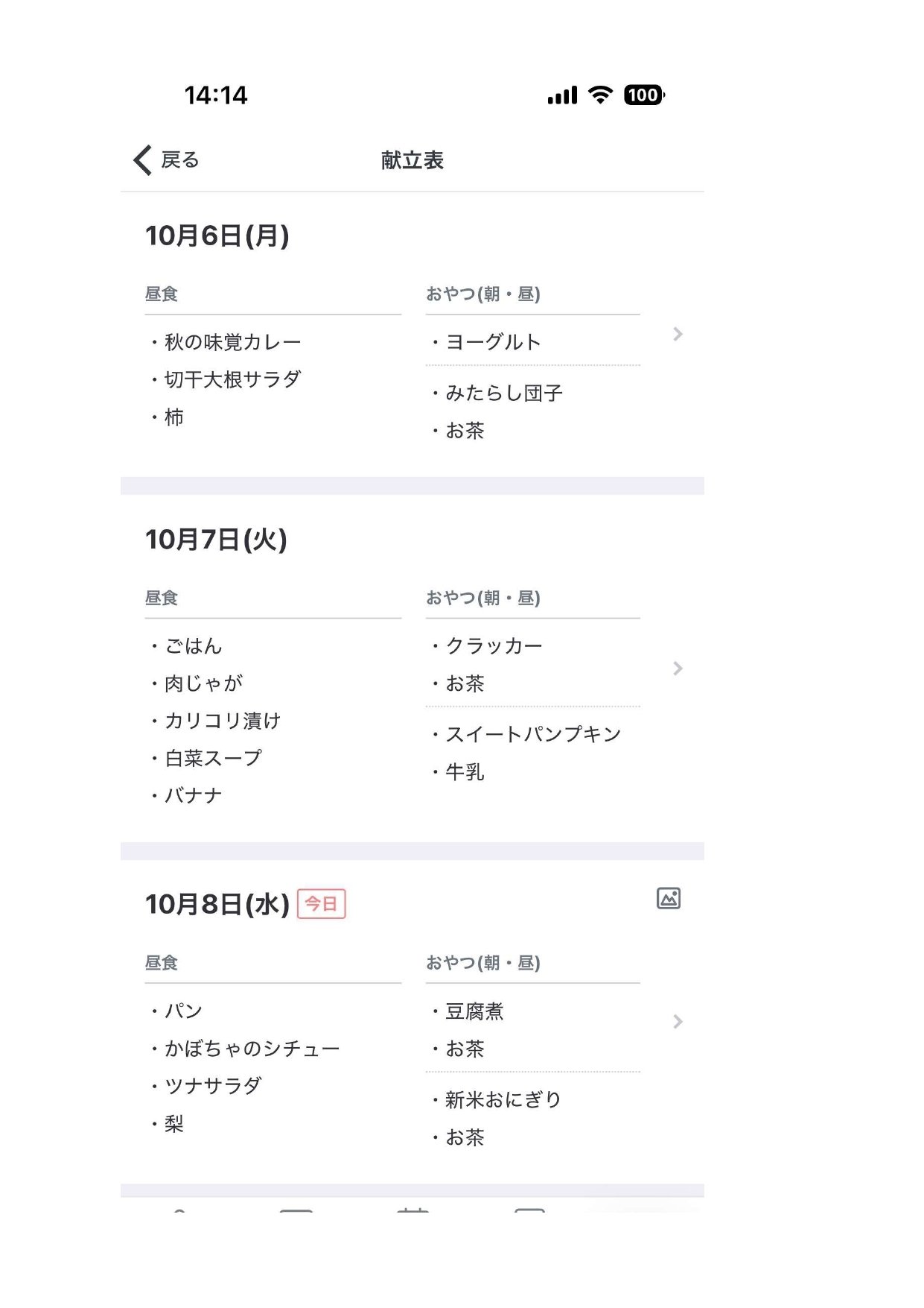 毎日 園での給食を献立と合わせてWEB上で紹介しています。なお給食・おやつは全て園内にて調理し、県内産の食材を優先に利用しています。 管理栄養士が献立の企画管理を行っています。